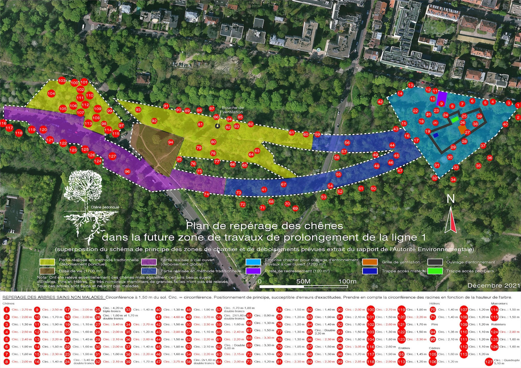 Page 59 : La commission « s’étonne que les arbres situés en sous-étage n’aient pas été pris en compte dans le décompte des arbres impactés. En effet, ces arbres contribuent au renouvellement naturel du Bois de Vincennes et leur non-prise en compte augmenterait d’environ 25 % le nombre d’arbres impactés par le prolongement. En complément, la commission ne peut que constater que l’état phytosanitaire des arbres concernés est très satisfaisant n’engendrant pas leur abattage en dehors des travaux liés au prolongement de la ligne 1. »